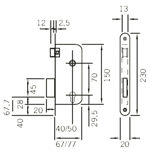 CERRADURA TESA 4130 DE 40 MM C/R AE SIN CILINDRO